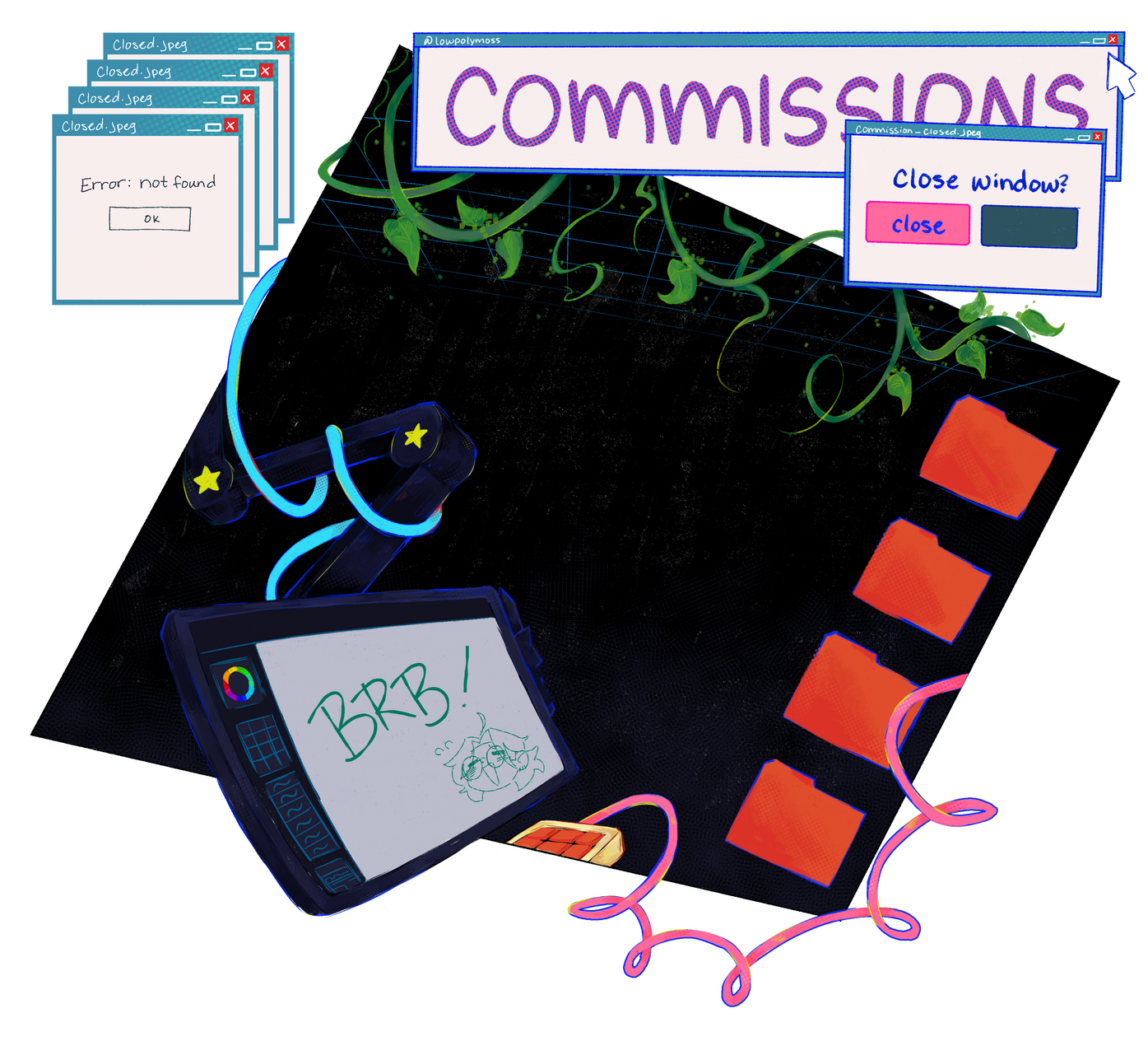 can't commission? That's okay! Follow me below on my social media. I love interacting, yapping, and hearing suggestions! I overall love to hear other people's ideas and sometimes try to do commission giveaways!